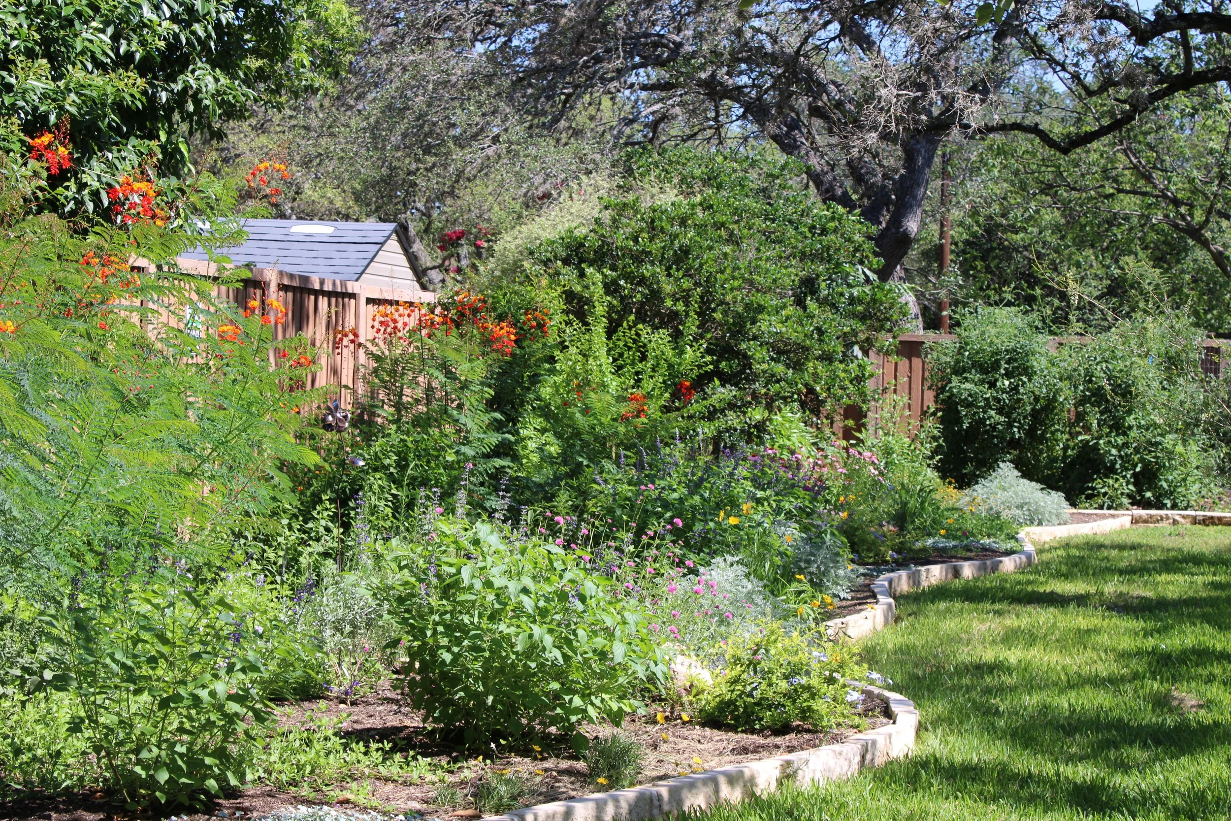 The plant palette is romantic and airy, yet controlled. No matter the season, there will be something beautiful to see in this garden. This garden is diverse, drought and deer resistant, and highly beneficial to ecology.