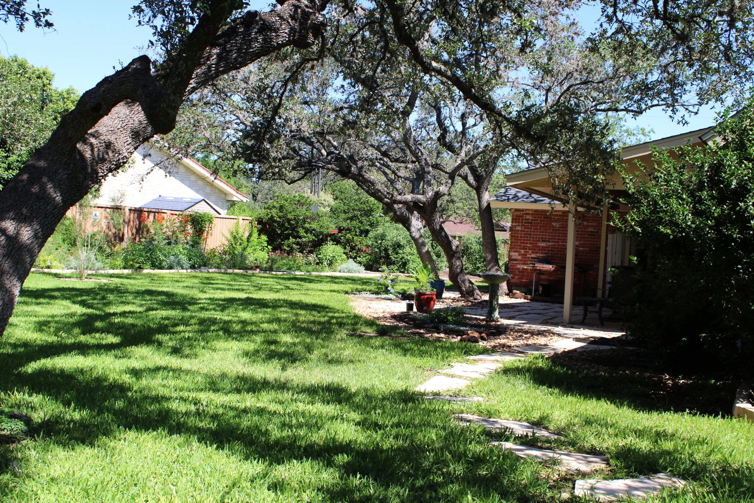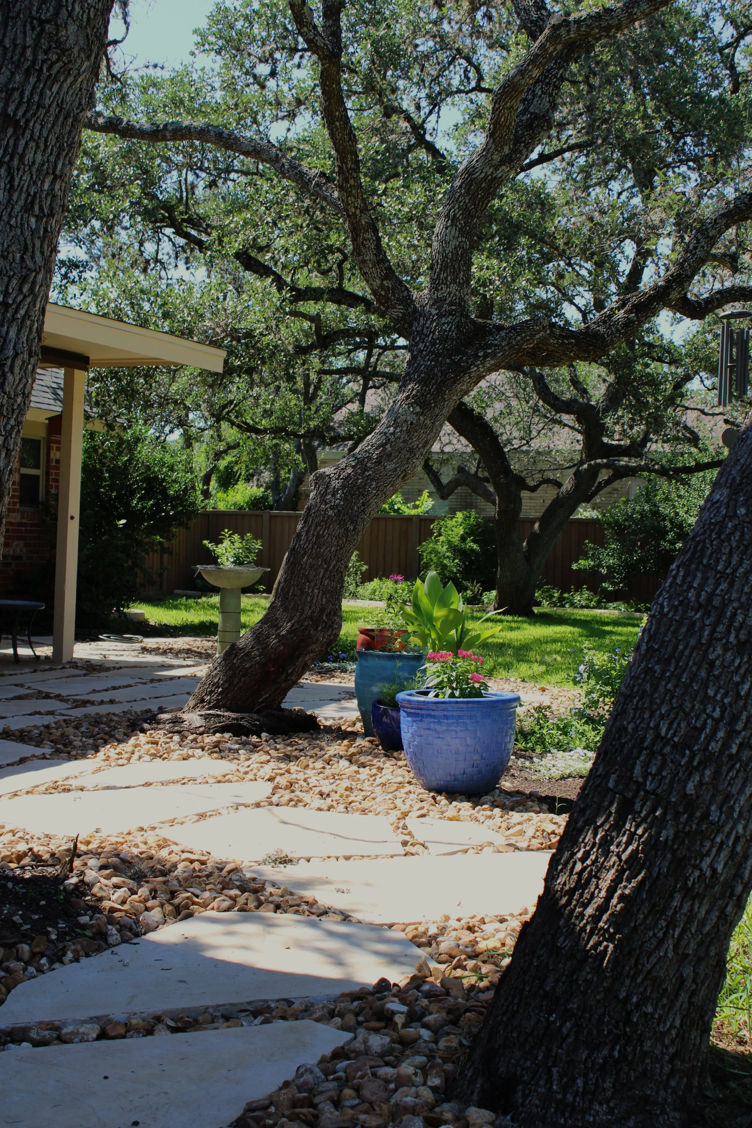 Limestone borders, pathways and a naturalistic patio add a sense of cohesion to the space and coordinate with the architecture.